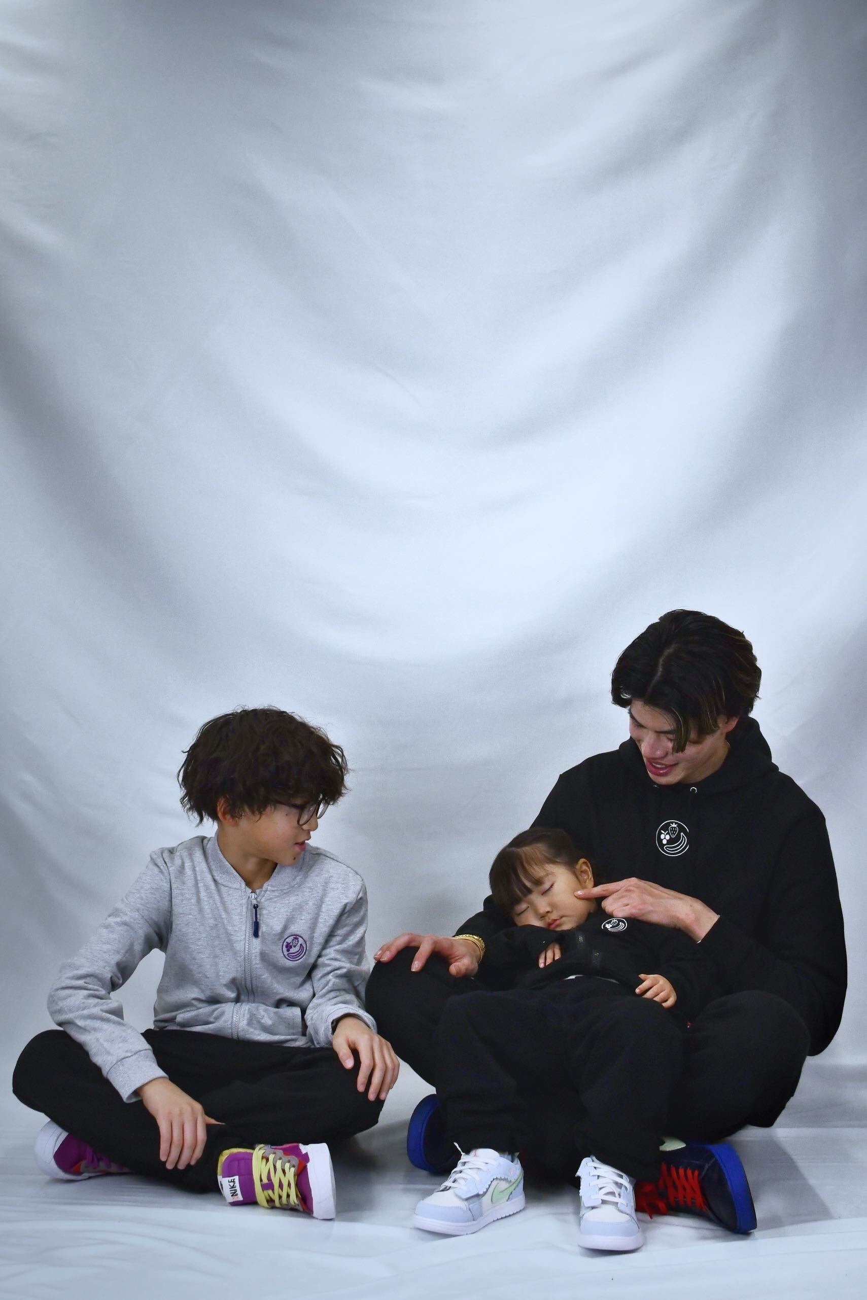 キッズ【数量限定】紋章刺繍 薄手ジップパーカーフードなし(グレー)