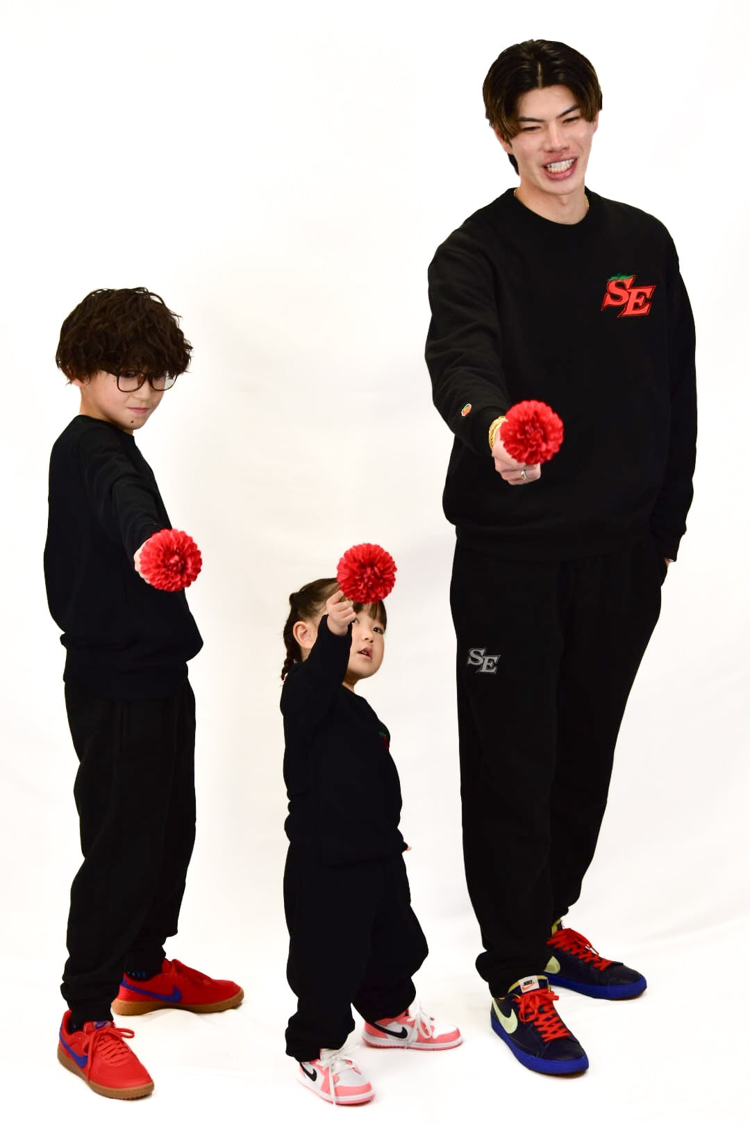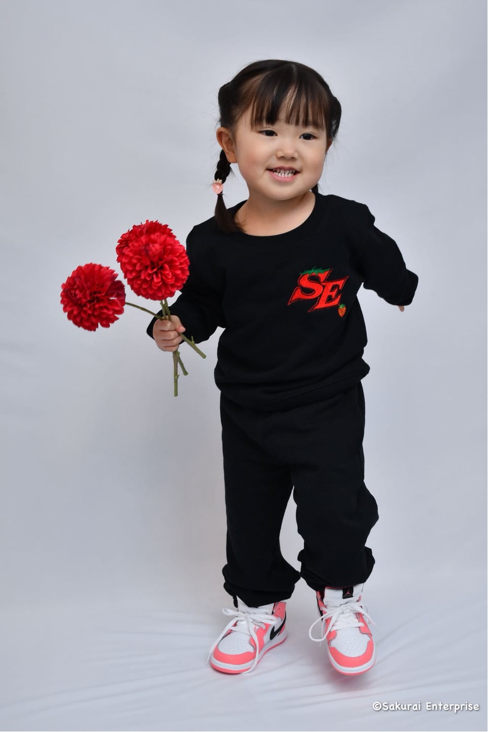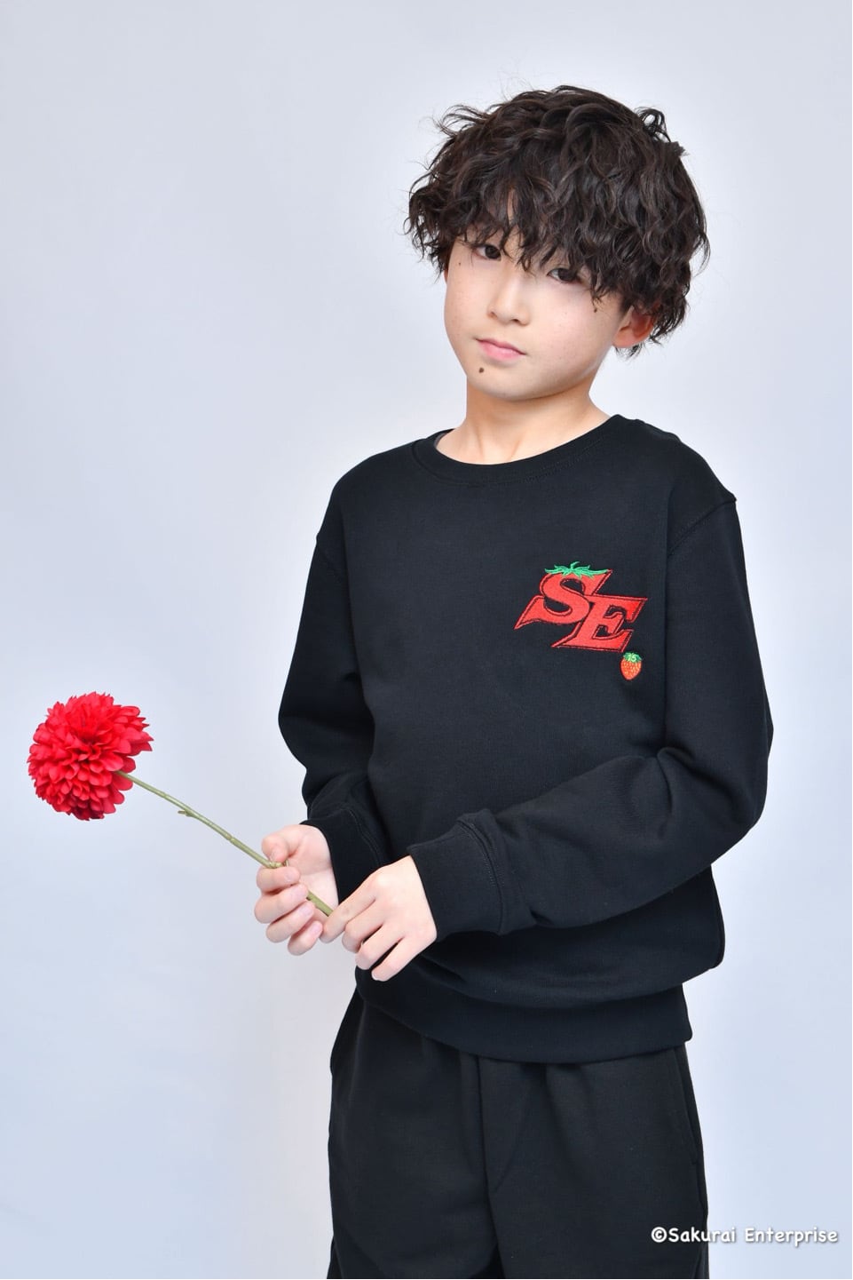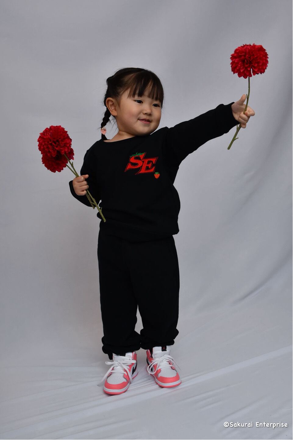 キッズ【数量限定 】いちごコラボ SE刺繍ロゴトレーナー(ブラック)