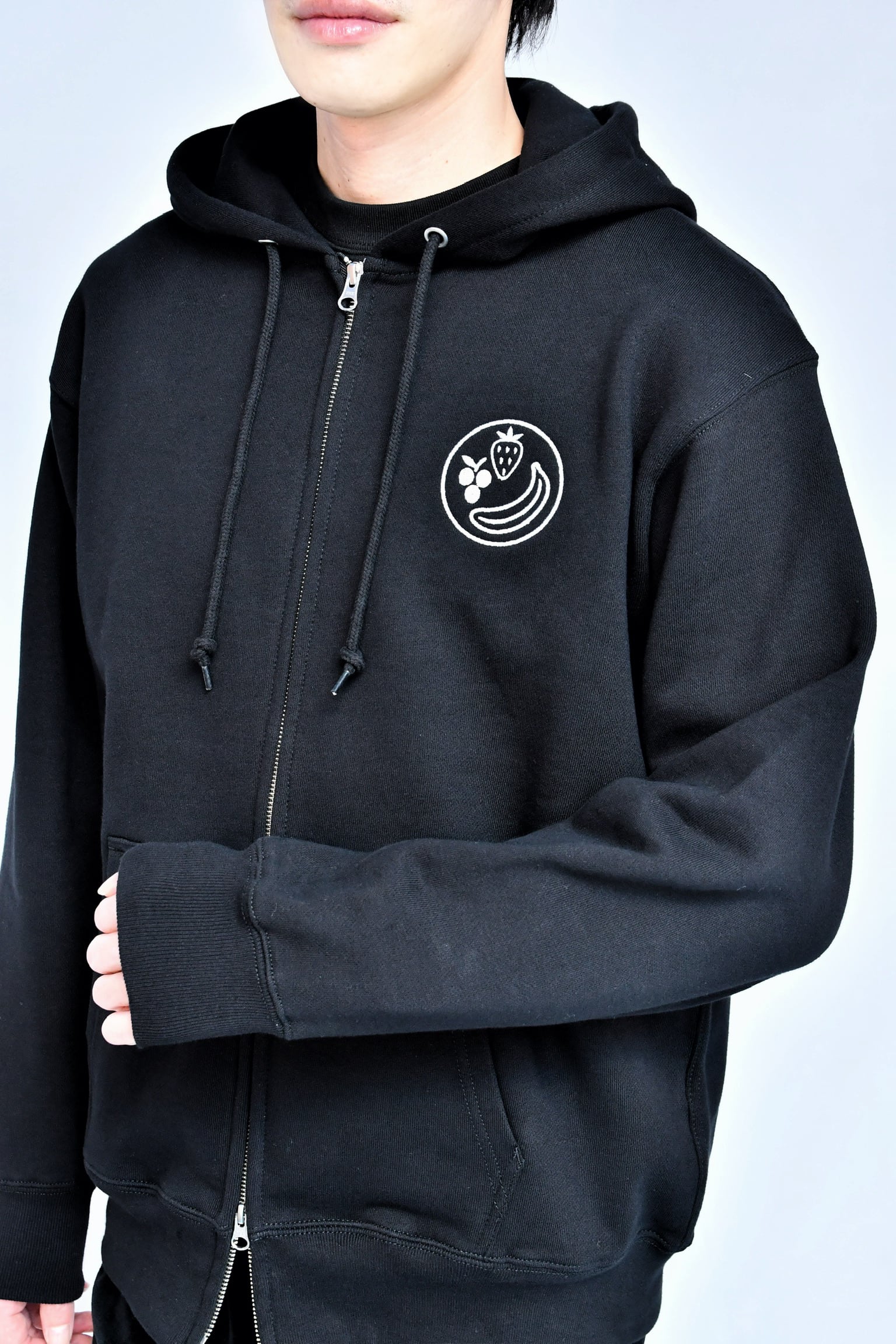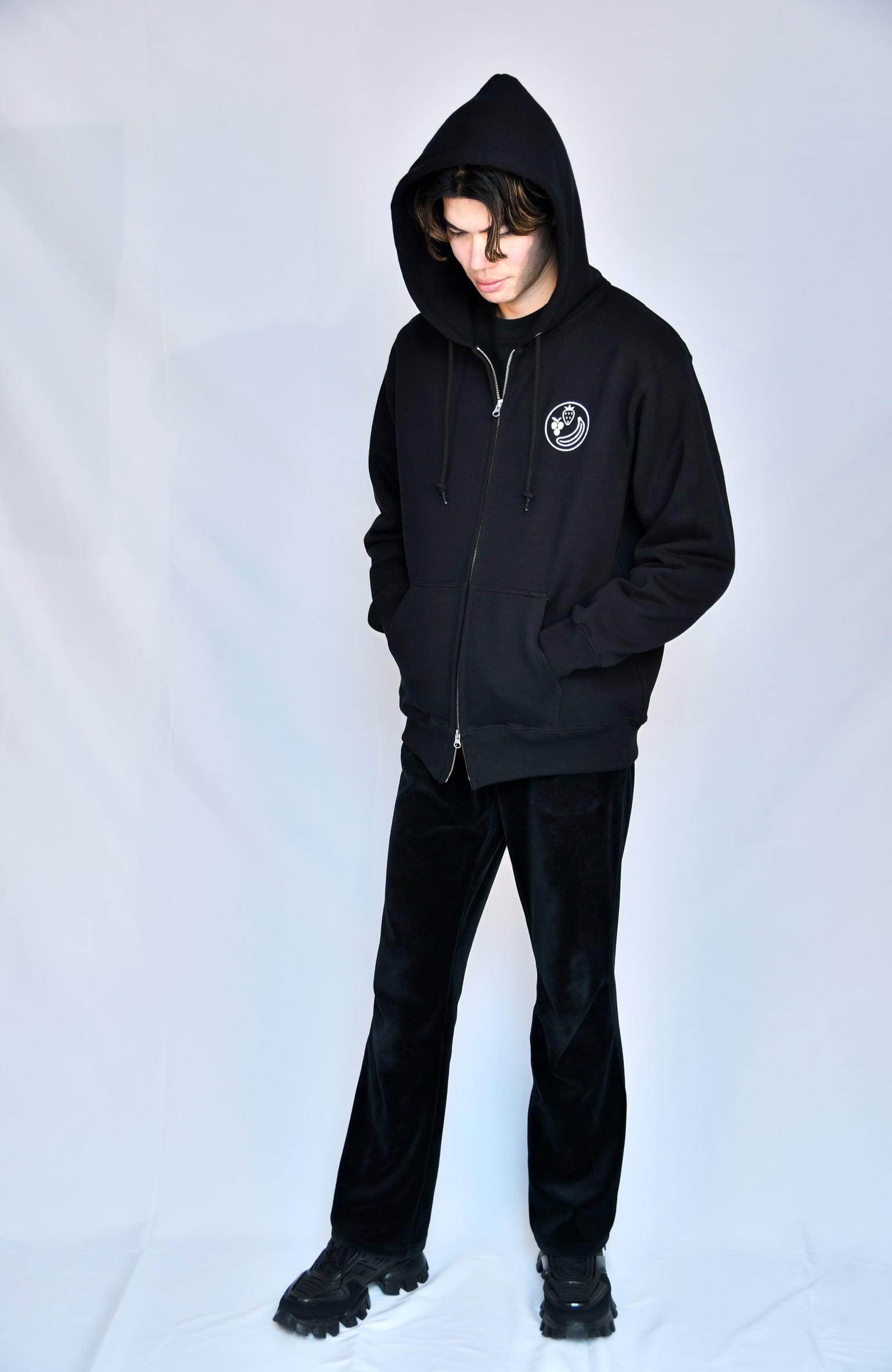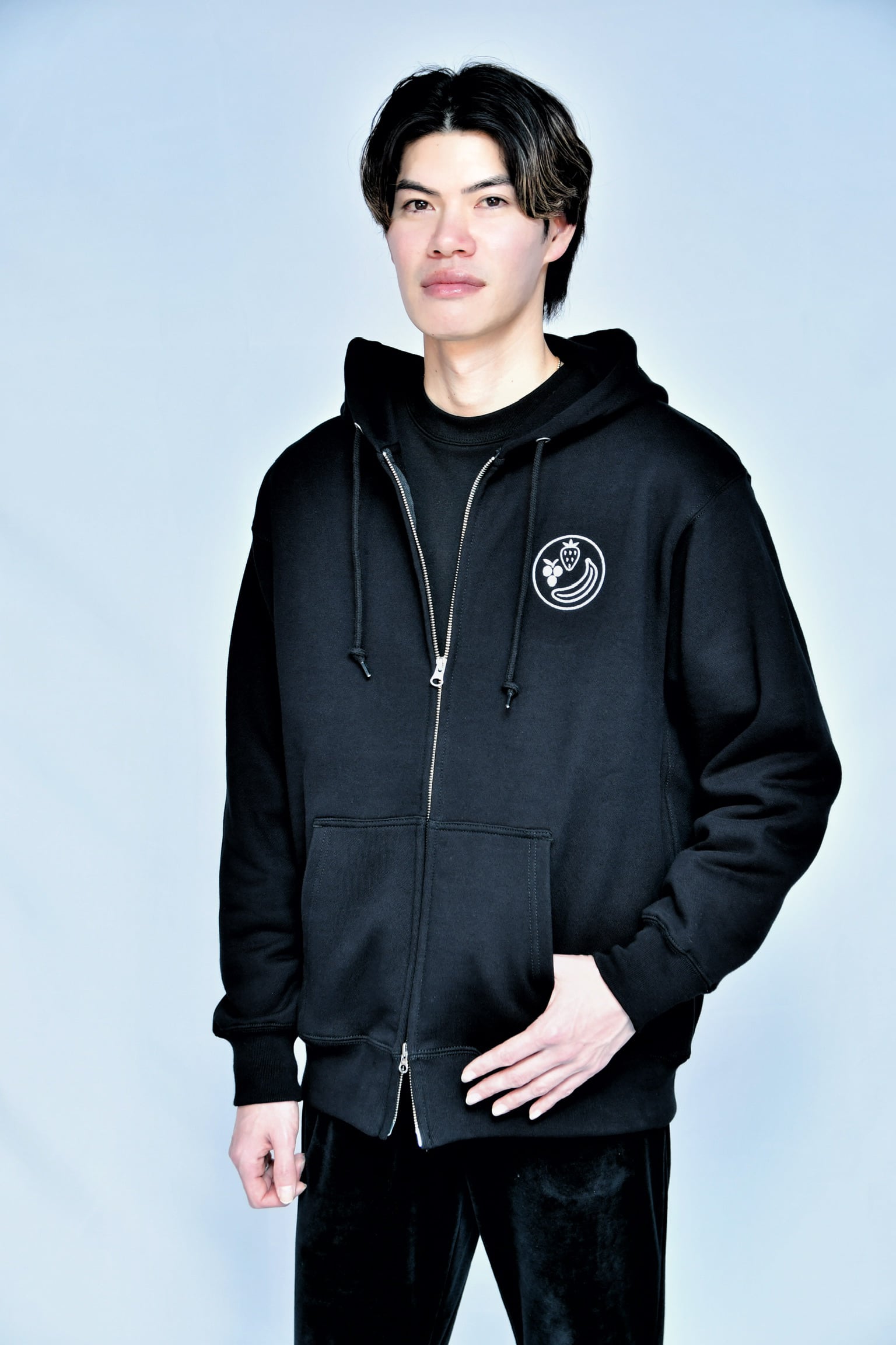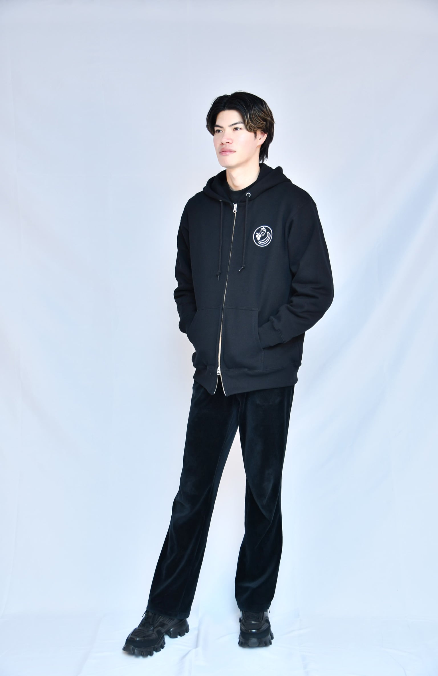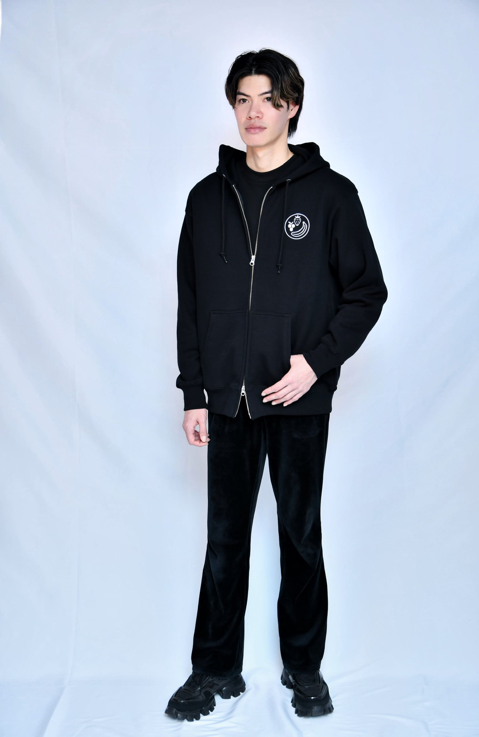 胸元にあしらった紋章刺繍が、上質な存在感を放つフルジップパーカー。